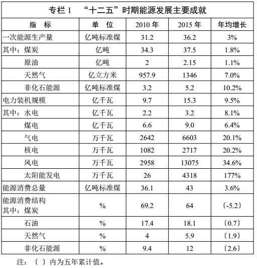 專欄 1 “ 十二五” 時期能源發(fā)展主要成就